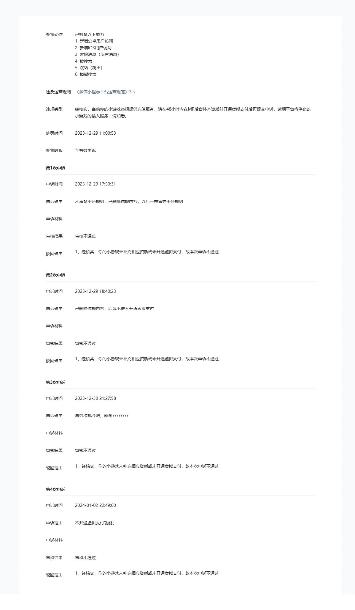 小游戏多次申诉不通过 ,已经去掉了支付功能,不知道还要整改什么