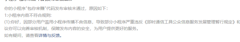 我想知道我们公司发布的这个小程序内容有哪些地方不符合审核的规则