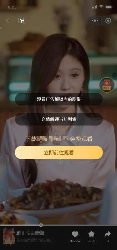 请问使用短剧播放器解锁剧集时能否同时展示 广告解锁按钮 和 充值解锁按钮?类似这种