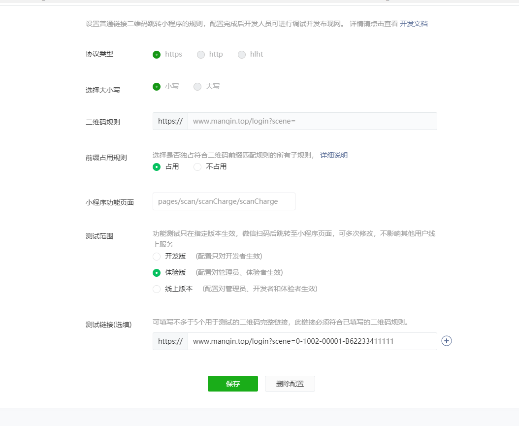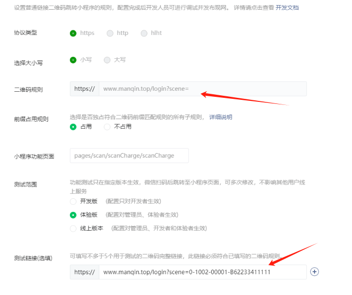 测试链接改成和二维码规则链接一样试试