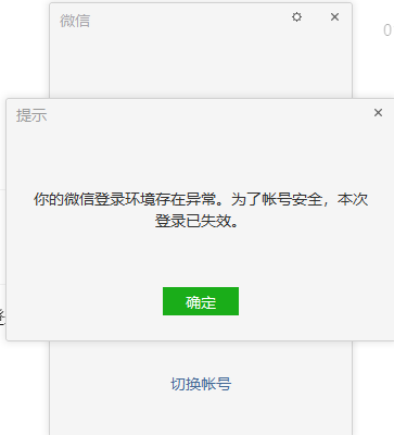 你好,提示“登录环境异常,本次登录失效,请重新登录”的问题,重新扫码登录即可,出现该提示一般是由于微信帐号被其它用户投诉导致(如:涉嫌频繁发送营销类广告骚扰信息等,请遵守微信使用规则,并规范个人行为,谢谢!)