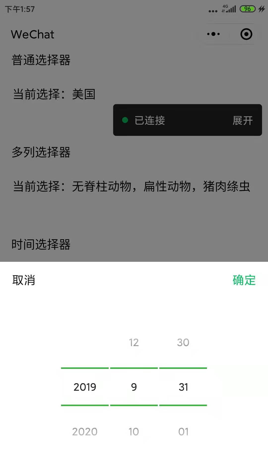 在安卓机器上,picker[mode=date]可以选择出2019-09-31这样不存在的日期。复现步骤如下: