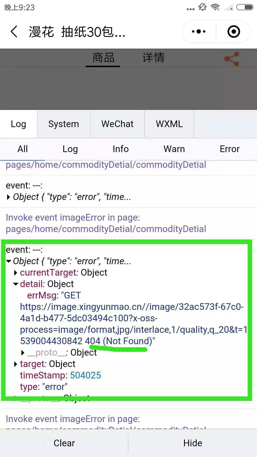放在阿里oss上的图片,在模拟器和ios上都可以显示,在某些安卓上,当删除了小程序第一加载时是可以显示图片的,但是关闭小程序后第二次加载阿里的图片就不显示了。image标签的binderror监听事件显示图片url为404,如图二,但是吧该链接复制到浏览器上是可以显示出图片的。 小程序后台已经设置了图片的域名白名单。 求解,头大。