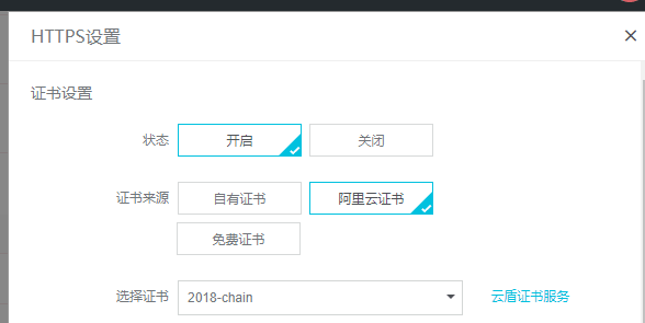 到 阿里后台设置图片域名https证书,选择阿里云证书就可以了![]()