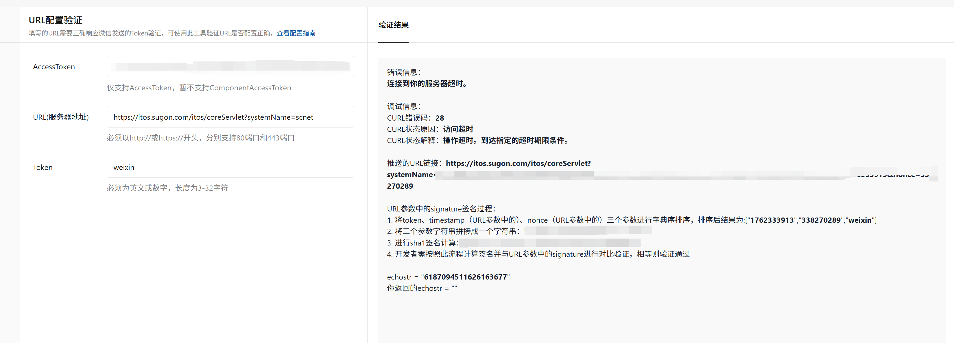 企业服务号配置服务器配置为什么一直提示请求url超时?个人服务号同一个URL可以配置成功,服务器的nginx也没有找到对应的请求日志,急
