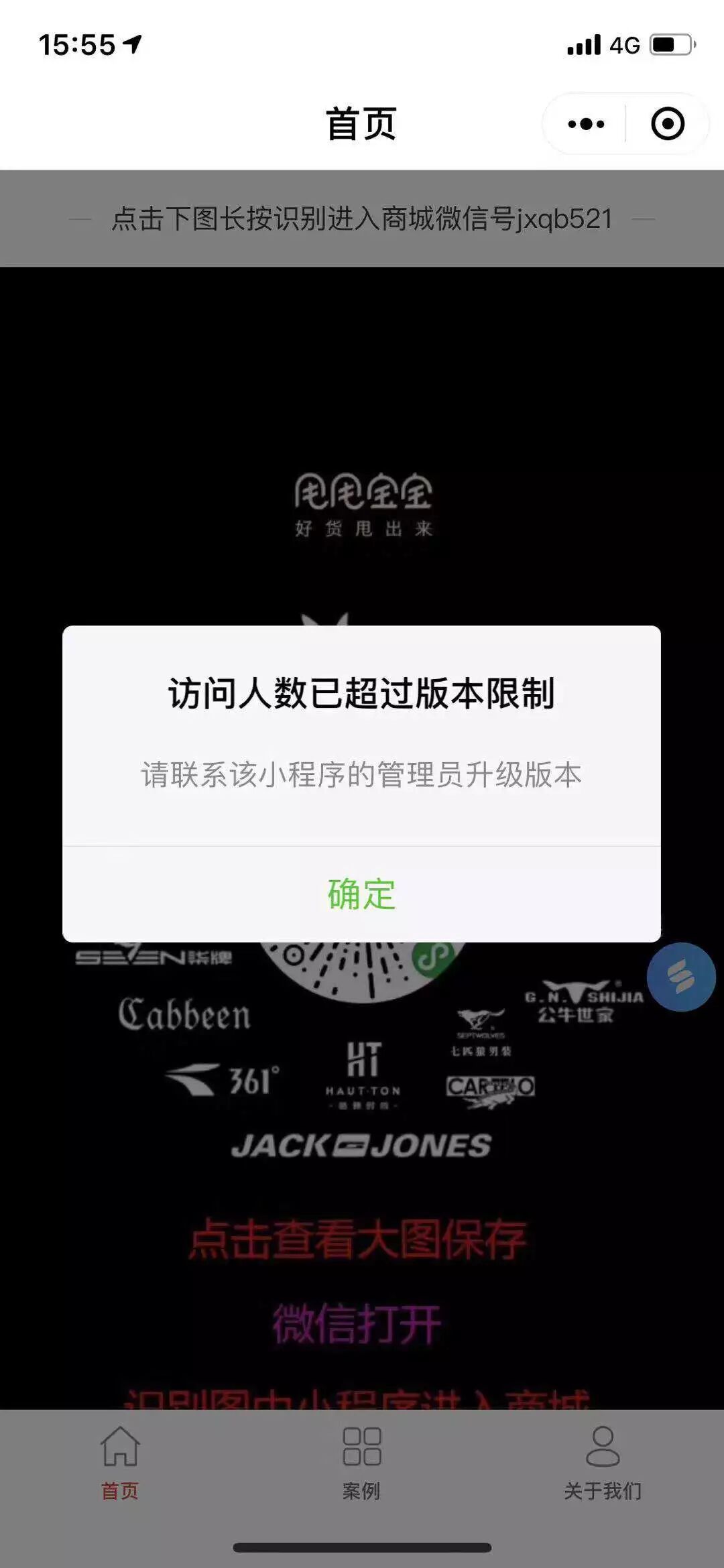 用户扫码时出现了“访问人数已超过版本限制”的字样