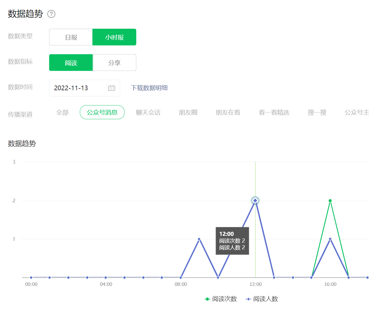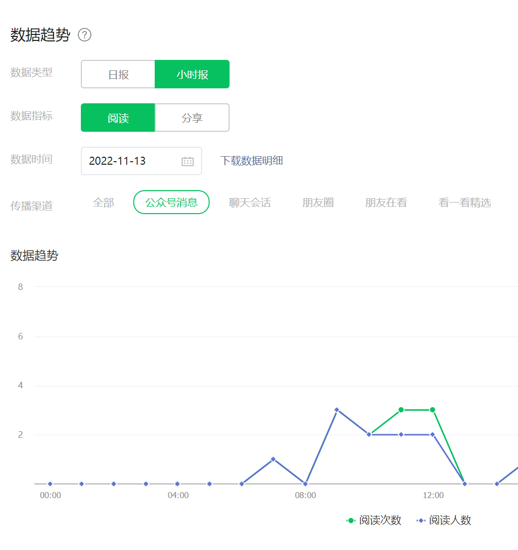 您好,公众号阅读数据连掉5天,从后台的内容分析中的“公众号消息”渠道,只剩下我和朋友一起点的数据。搜一搜的数据也掉了不少,但是已关注的用户浏览数据特别少,这不太正常。都是过百过千的用户数,“公众号消息”渠道的阅读量马上就要掉到个位数了。