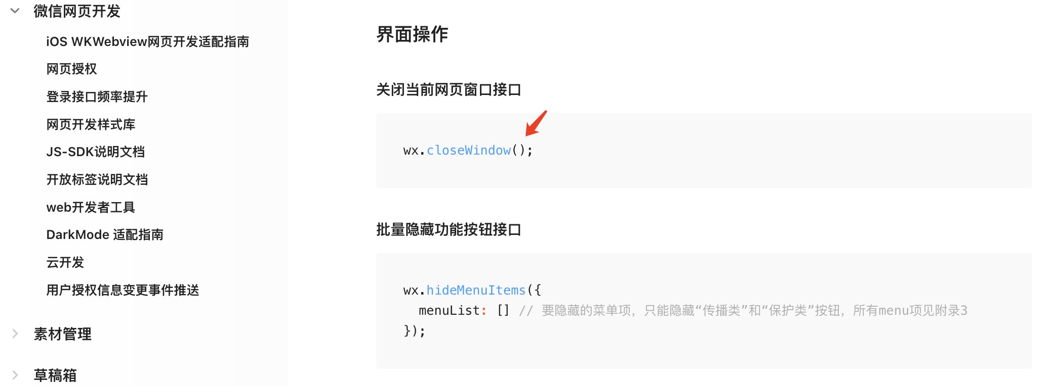 如果是微信浏览器左上角的关闭图标?点击它关闭页面,不支持