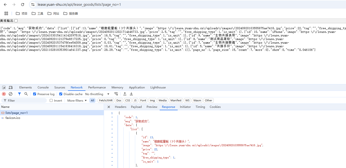 网站:https://lease.yuan-shu.cn/api/lease_goods/lists?page_no=1