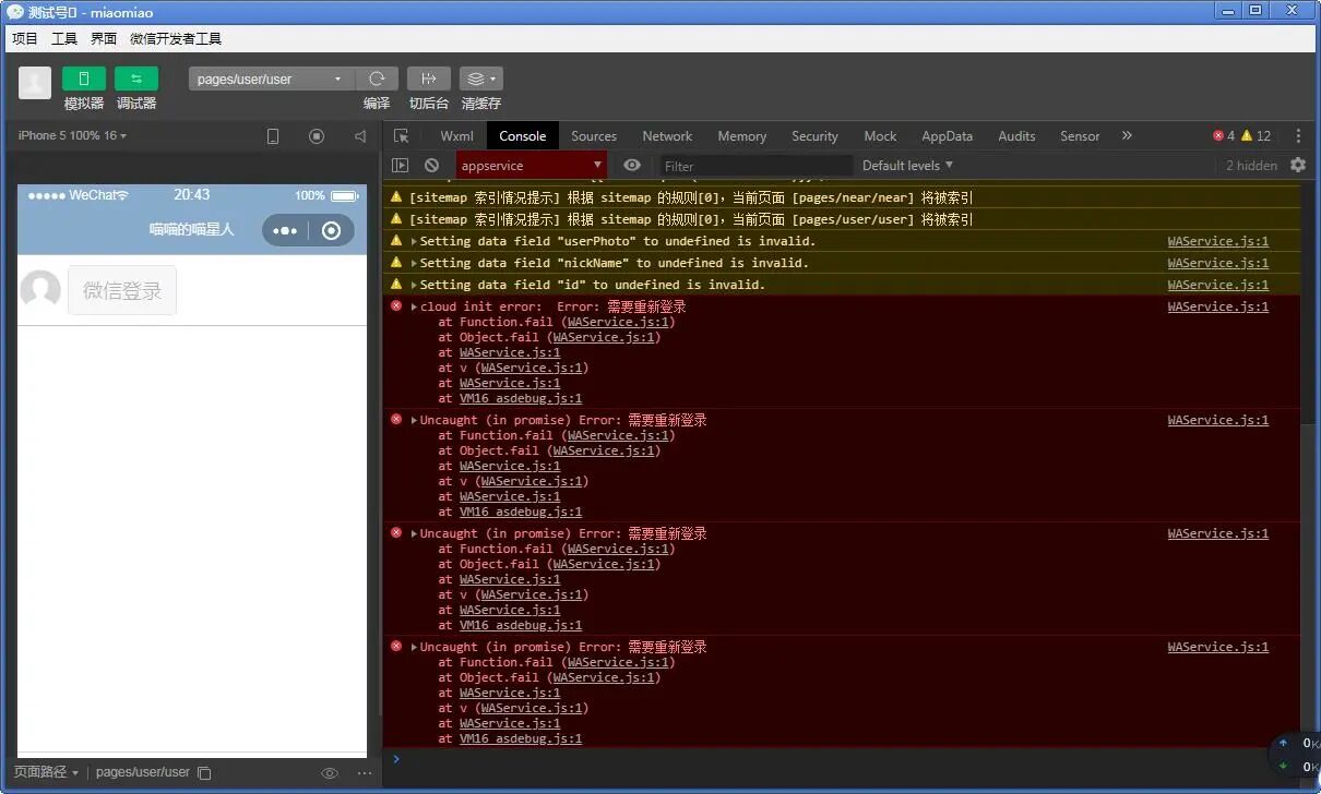 VM3545:1 cloud init error: Error: 登录用户不是该小程序的开发者