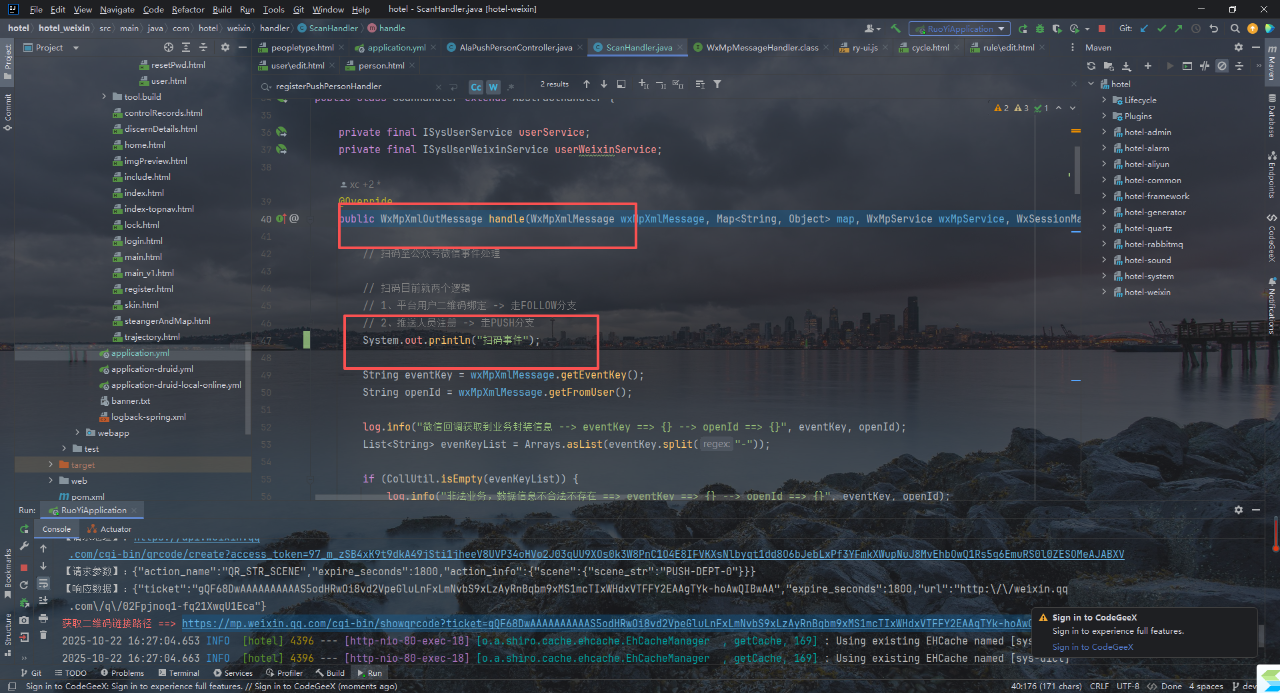 扫码二维码后没有进入回调方法,而是公众号直接报错。找不到日志不知道如何排查,突然报错,已经运行很久了。菜单和其它页面都正常