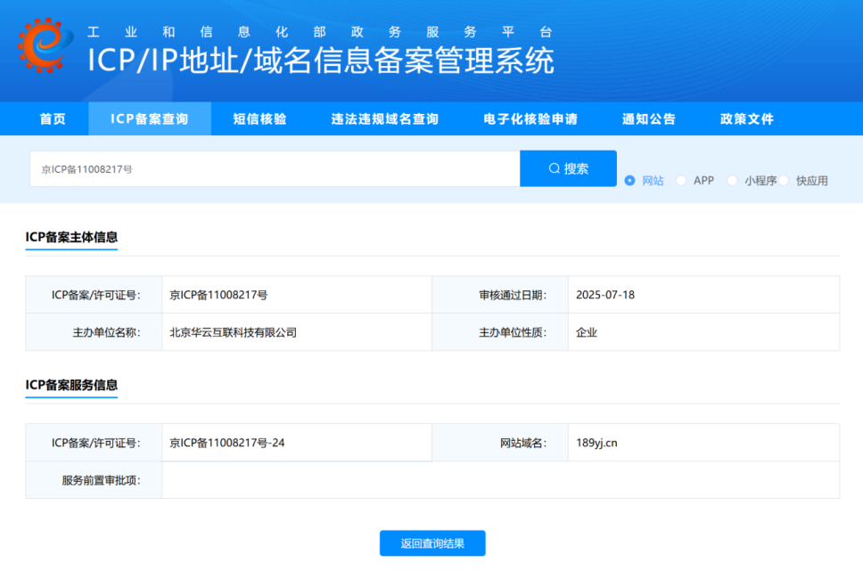 该网站根域名已于2025年7月18日经审核通过企业级备案 (备案号:京ICP备11008217号-24),网站已部署ssl证书,网站采用非标端口8444为业务需要。