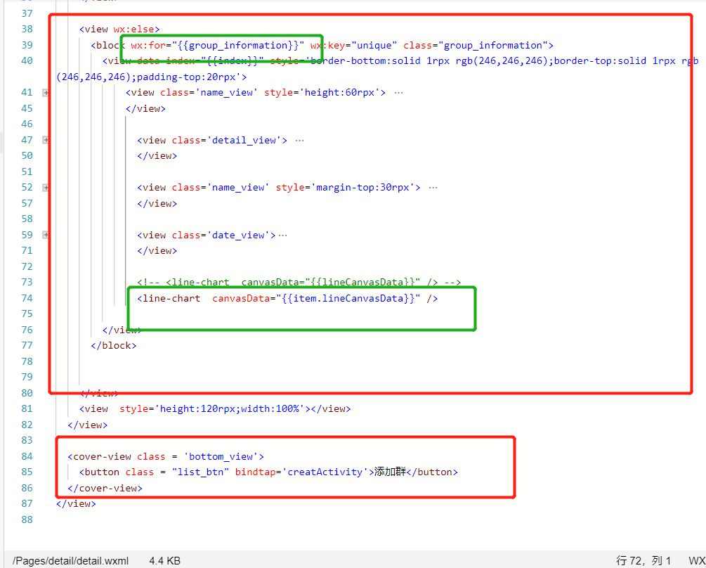 我这个是唯一的一个固定button,而我的canvas是根据数组长度来画的个数,而且这个canvas是单独写成了组件形式加入到wxml里面的,代码如图: