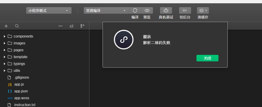 请问这个问题您找到解决办法了吗?我今天也遇到了 通过二维码编译 提示‘解析失败,非小程序码’。