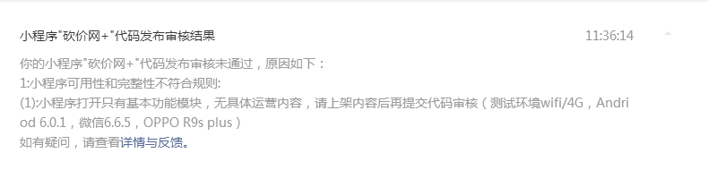 我们的小程序之前提交过一次,审核通过,但是最近提交的一直没过,原因是“可用性和完整性”,但是我们的首页还有其他页面都是可以正常运行的,并没有出现一直加载或者加载失败的情况,请官方解答,谢谢。
