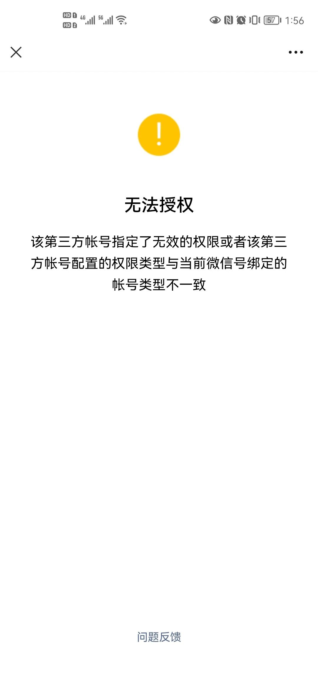 你好,请联系服务商检查一下或者你自己检查一下授权链接,或者发出来。 1,服务商构建的授权链接的参数中指定的auth type与你旗下有的账号类型不一致。例如授权链接中指定了只能小程序来授权。但是你作为管理员的账号只有公众号。 2,还有例如就是授权链接中指定了小程序,但是服务商配置的是公众号的权限集等等。 请自行排查一下吧。 3,详细逻辑前往官方文档查看https://developers.weixin.qq.com/doc/oplatform/Third-party_Platforms/2.0/api/Before_Develop/Authorization_Process_Technical_Description.html
