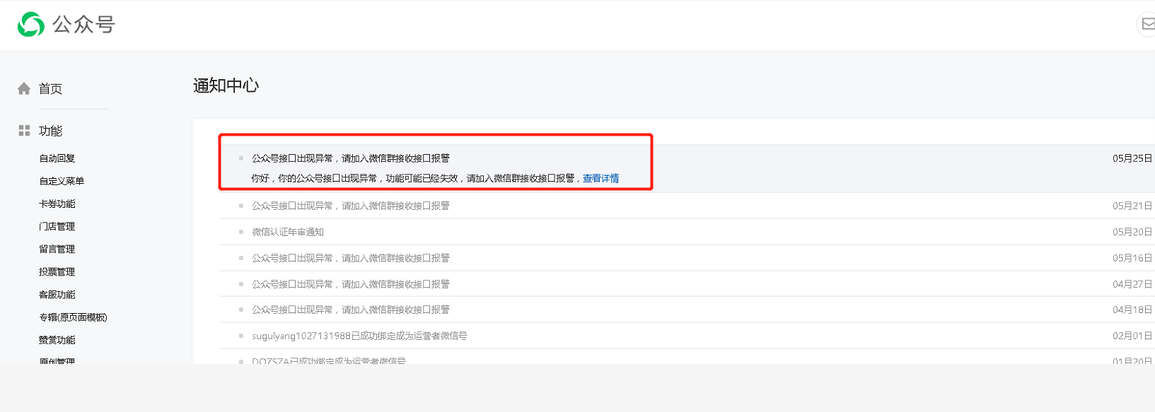 公众号提示这种接口出现异常,请加入微信群接收接口报警,需要如何处理,求大家协助下,谢谢