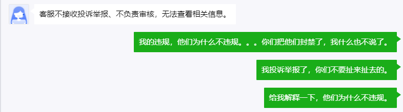 运营专员给我回复说,我反馈的信息属实,对以上小程序已做了处罚,可是,我当时验证就能继续访问,一个月过去了,仍能访问,说好的处罚和封禁呢?我搞不懂了,问题出在哪?要是没有本事将他们封禁,就把我的解除封禁!!