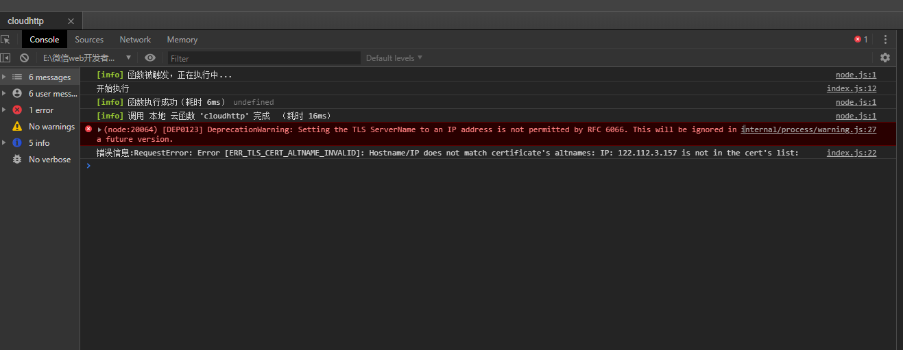var rp=require('request-promise') //这个模块自己查查 rp('url') .then(function (htmlString) { console.log(htmlString) // Process html... }) .catch(function (err) { // Crawling failed... }); //你可能哪里写错了吧