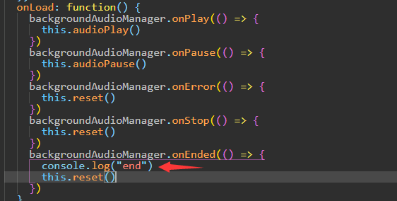 在onlond里面执行 backgroundAudioManager.onEnded(() => { 在这里面根本打印不出来 })