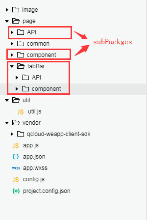 subPackages后,将按subPackages配置路径进行打包,subPackages配置路径外的目录将被打包到 app(主包) 中app(主包)也可以有自己的 pages(即最外层的 pages 字段)