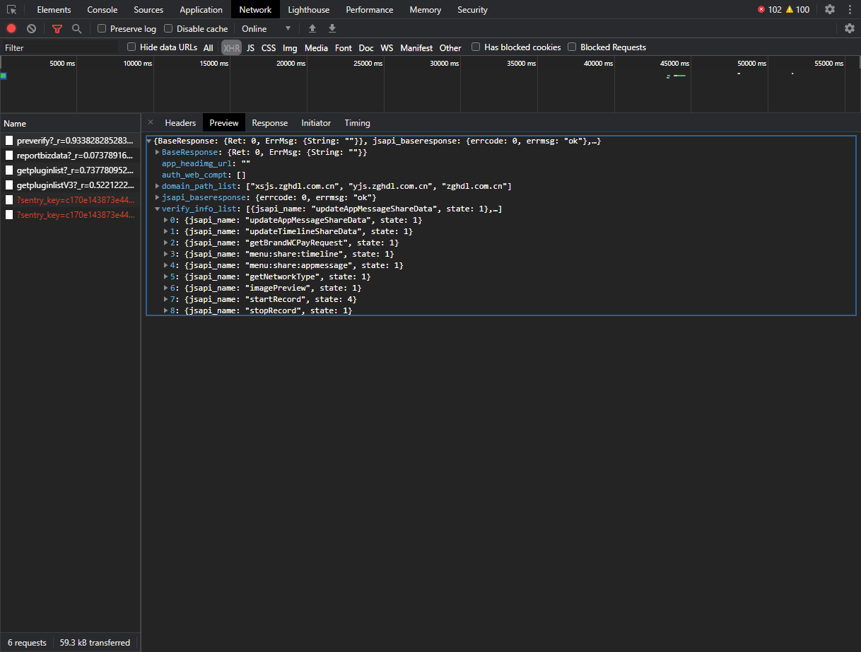 你好,可以点击顶部菜单「微信开发者工具」-「调试」-「调试微信开发者工具」,选到network面板,然后刷新一下你当前的网页,找到 `preverify` 这个接口,看看verify_info_list里的updateAppMessageShareData的状态是什么