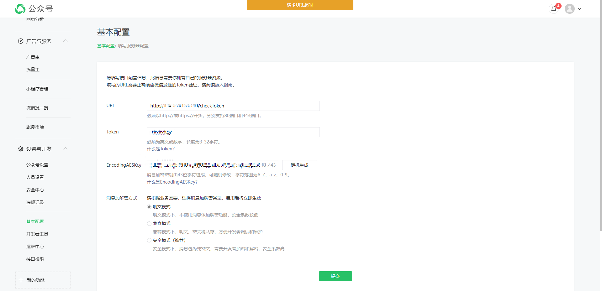 postman和开发工具能调通,服务器内部也可以访问外网,但是基本配置里配置不了,请求超时