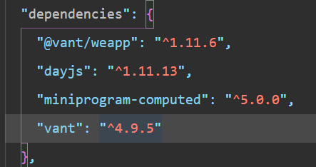 版本号: "@vant/weapp": "^1.11.6" "vant": "^4.9.5" 图1