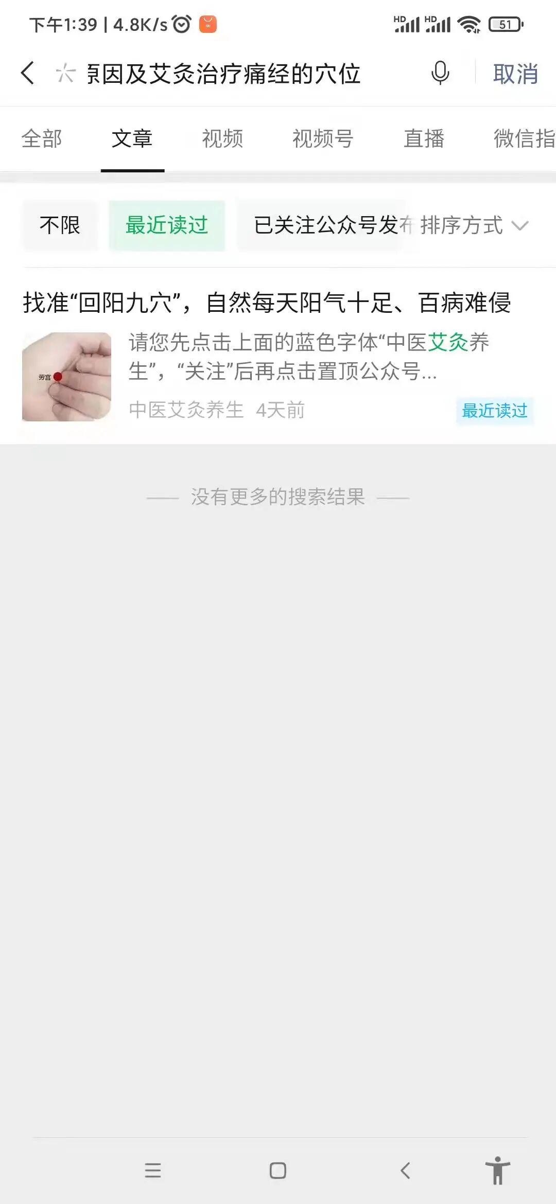问题补充:在最近阅读、已关注公众号,这两个选项下都搜不到