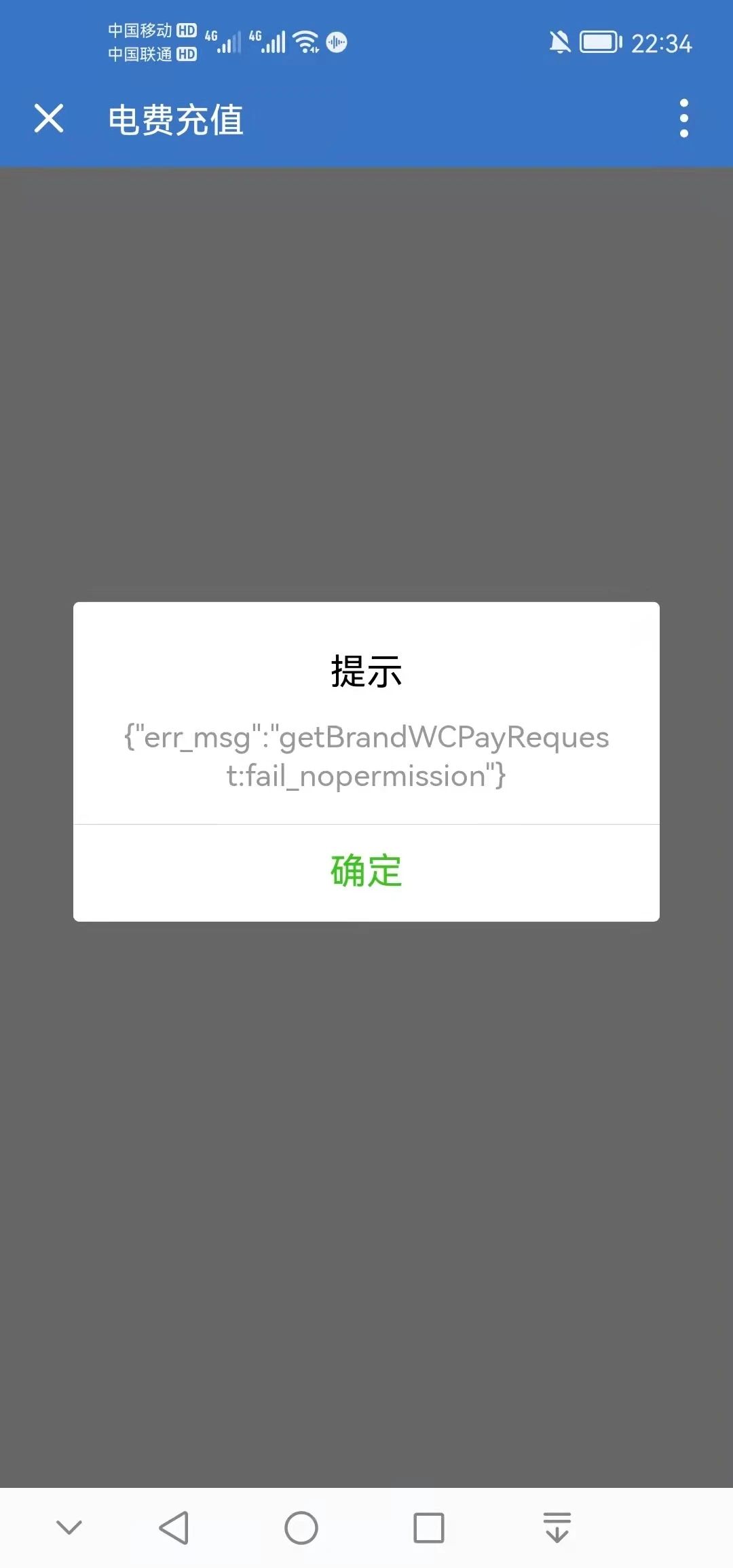 企业微信里面充值,本来好好的,最近几天不能用了(微信里的公众号可以充值),我传递的参数:{"appId":"","timeStamp":"1648132551","signType":"MD5","package":"prepay_id=wx242235506003295fc8c78afcfe820f0000","nonceStr":"1648132551641","paySign":"48CFF1E5E315FC3B356F2F7D4FA786A2","jsApiList":"['getBrandWCPayRequest']"}