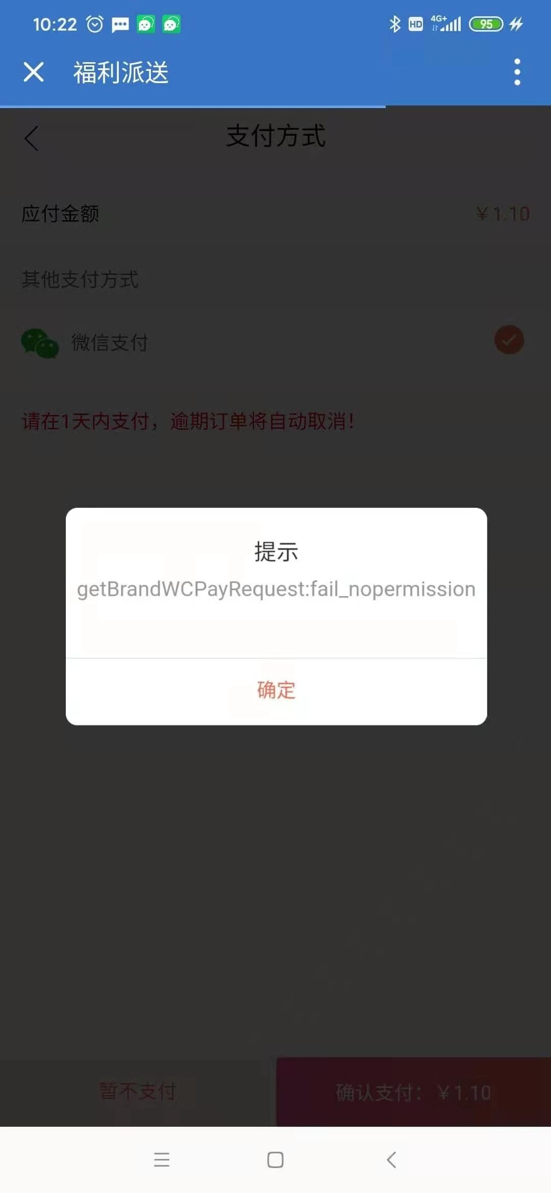 在企业微信里调起微信支付,就会报getBrandWCPayRequest:fail_nopermission。