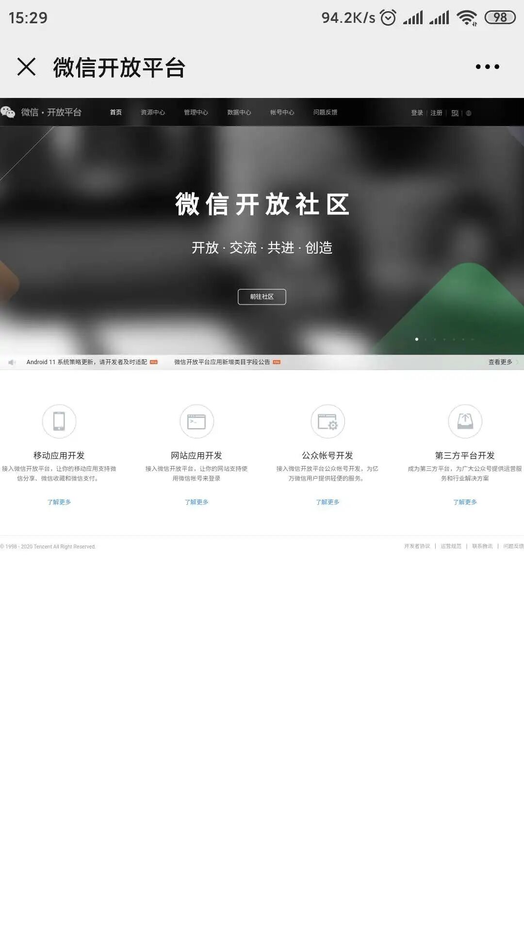 请使用微信扫描二维码关注 “微信开放社区” 公众号