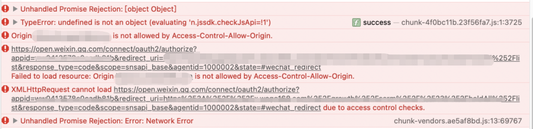 你好,api服务端接口是https请求,浏览器具有同源策略,故会存在跨域问题,跨域问题不属于企业微信问题,需自行处理