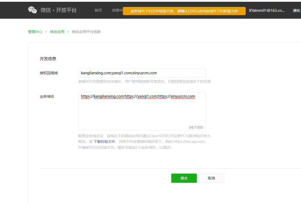 【紧急】微信开放平台业务域名配置审核不通过,请求人工协助?