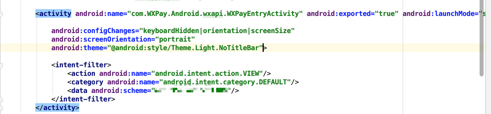因为是导出到unity运行的 所以配置WXPayEntryActivity是这样的