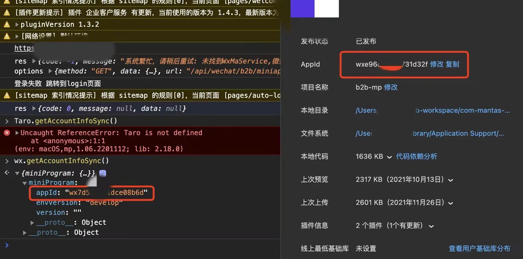 这时开发者工具中 详情=>基本信息=>appid已经更新(生产环境的appid),但使用Taro.getAccountInfoSync().miniProgram.appId获取到的appid还是测试环境的appid,只能刷新开发者工具才会更新成正确的appid