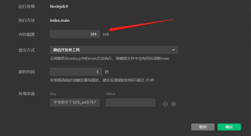 在云函数的控制面板里,配置-> 内存配置 调高它的值