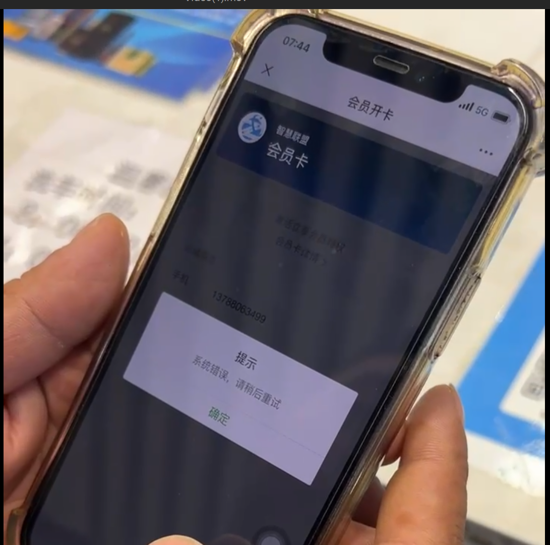 早上7点十几分又开始出现,新用户领取会员卡之后点击激活,无法激活提示系统错误,请稍后重试
