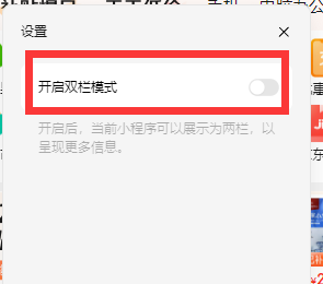 2.通过拖拽小程序的窗口,实现关闭或开启双栏模式。拉小窗口可关闭双栏、拉大窗口可开启双栏。