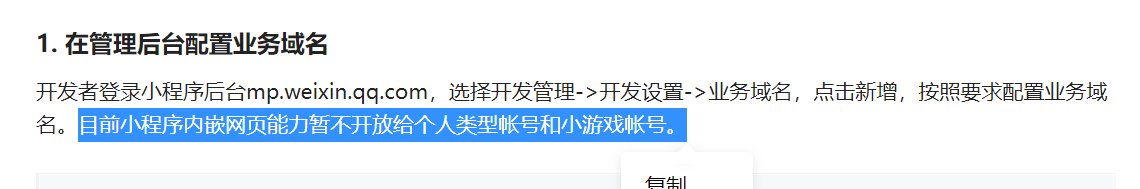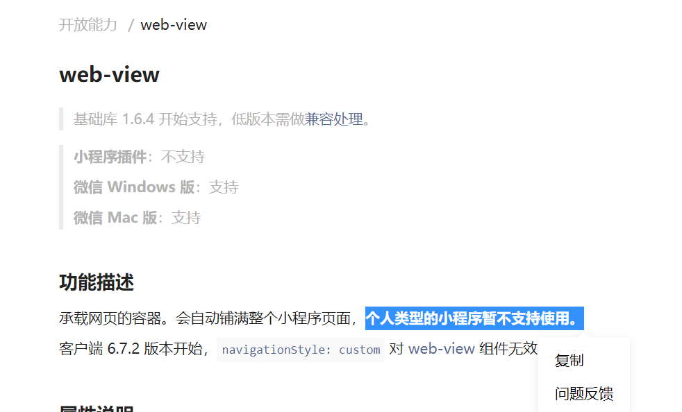 个人主体小程序 不支持使用webview组件。