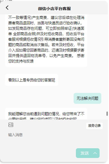 微信小店消费者退回商品影响二次销售,商家已经提供凭证,平台也判定支持商家,但是因为无法获取消费者收货信息无法寄回,希望可以完善这个功能,可以参考字节通过订单号手工打单!平台客服根本无法解决问题,回复效率慢,商家维权无门,希望平台重视,营造一个公平公正的市场环境!