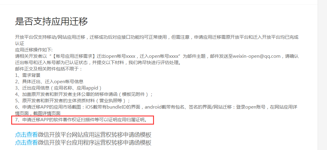 公司业务需要,移动应用需要从现在的微信开放平台账号内迁移至另一个主体的账号内管理,但是App的软件著作备案是在准备要迁移的账号主体下。