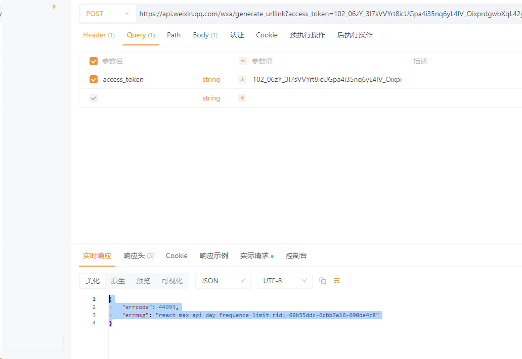 "errmsg": "reach max api day frequence limit rid: 69b55ddc-6cbb7a16-690de4c8"