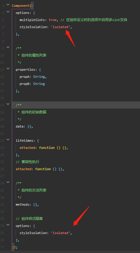 你好,不要定义两个opotion。请把下面的注释了,把styleIsolation: 'isolated'放到上面就会恢复正常。