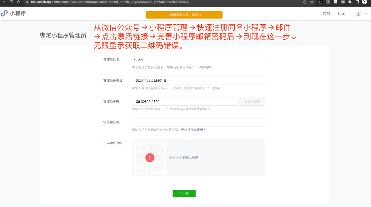 你好,更换浏览器,电脑网络呢,如果仍报错提供公众账号,小程序账号,扫码微信号,具体操作时间