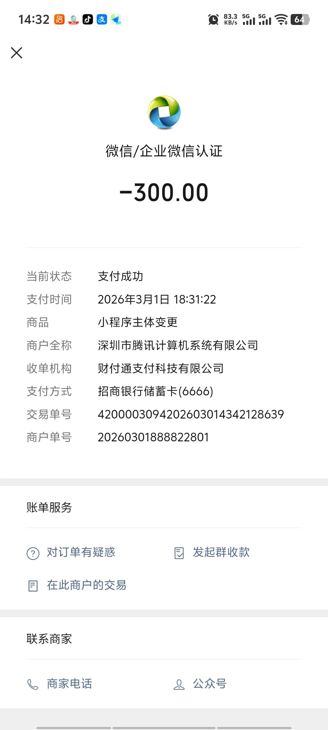 微信小程序认证通过后缴费300,变更主体后微信认证还需要缴费吗?