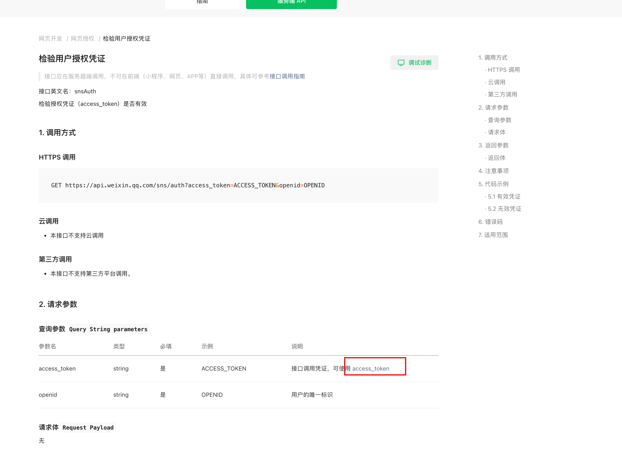 调用 https://api.weixin.qq.com/sns/auth?access_token=ACCESS_TOKEN&openid=OPENID 请求失败 请求 rid:68ba6348-51cc4960-745cc589