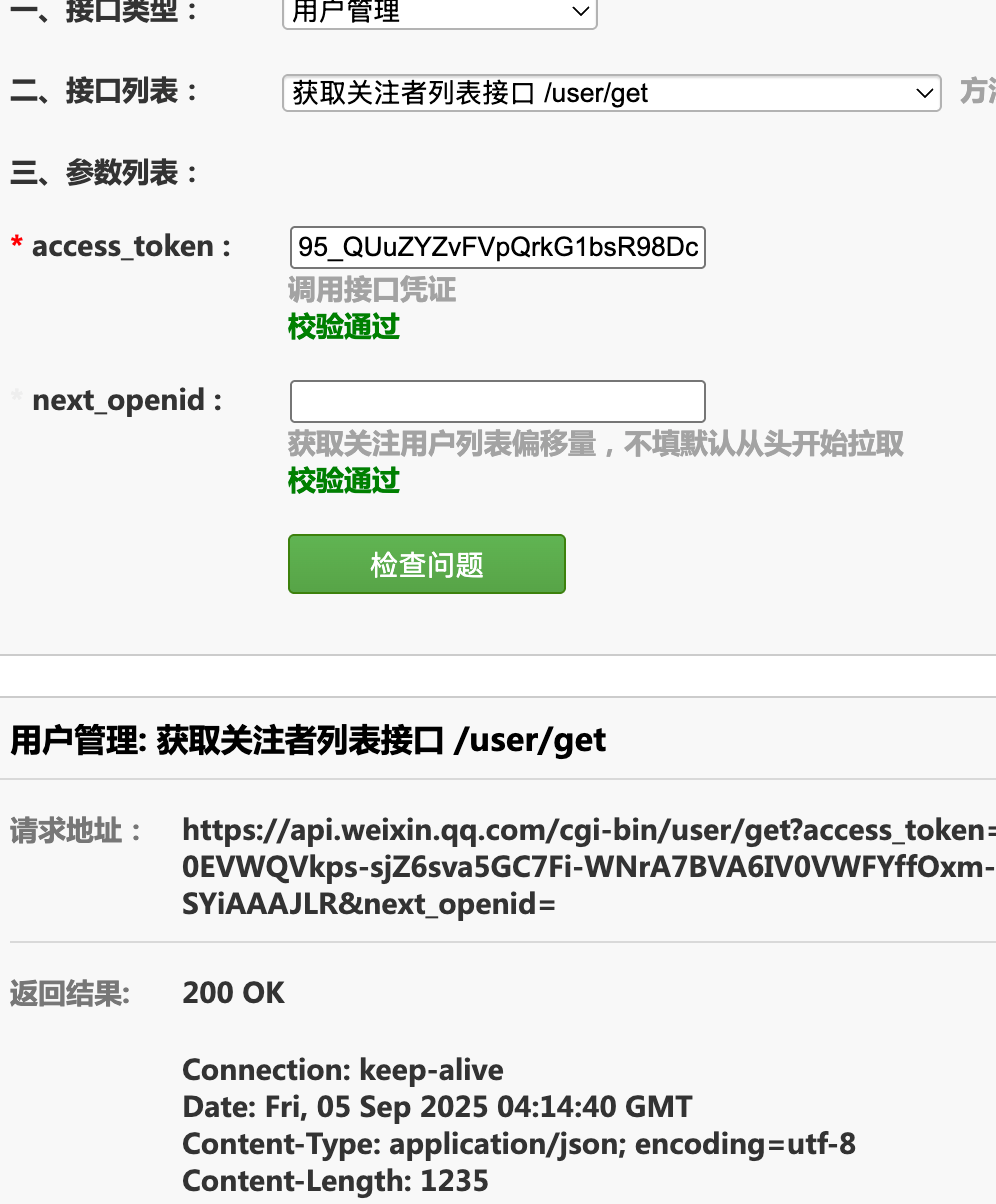使用token请求公众号用户列表请求正常
