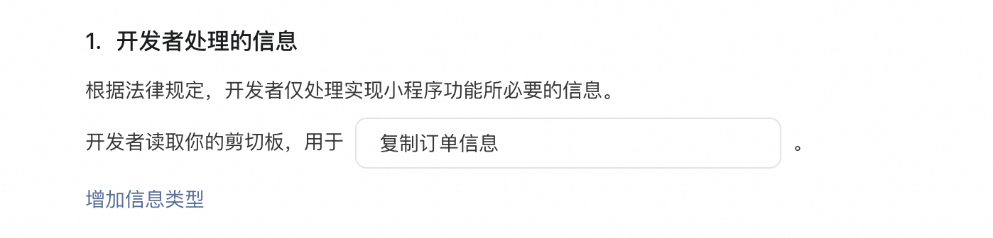 用户隐私保护指引-开发者处理的信息-自定义内容更新审核通过之后,小程序端可以看到,但是小程序后台点击更新进去看不到最新内容,是为啥?
