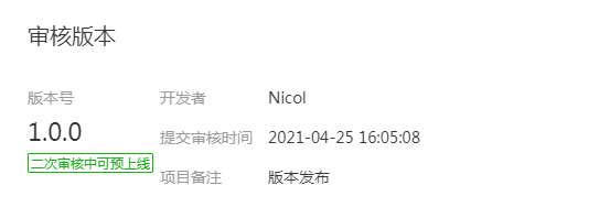 你好,经核实,小程序2021-04-25,16:05提审的版本已支持预上线功能,小程序预上线功能可支持发布并上线当前审核版本,后续小程序若有其他问题,会有站内信通知,请留意站内信。